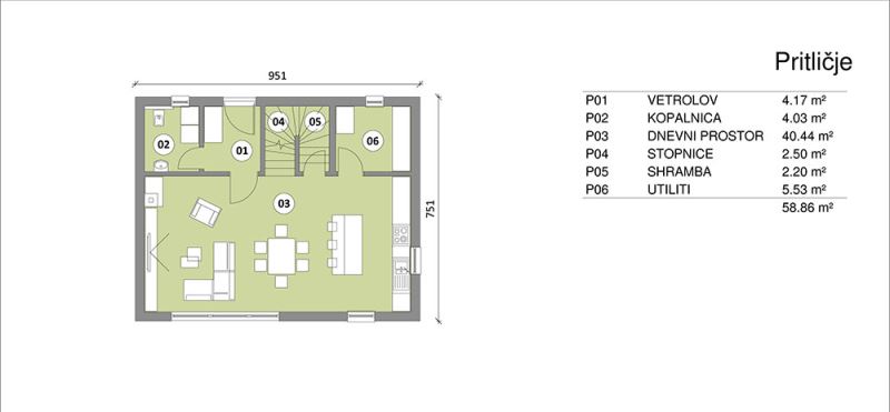 Cene in izrisi hiš so informativnega značaja. Končna cena in tlorisi se oblikujejo na podlagi individualnega dogovora s stranko.